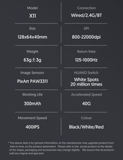 - PixArt PAW3311センサー搭載、最大 22,000 DPI の精密トラッキング